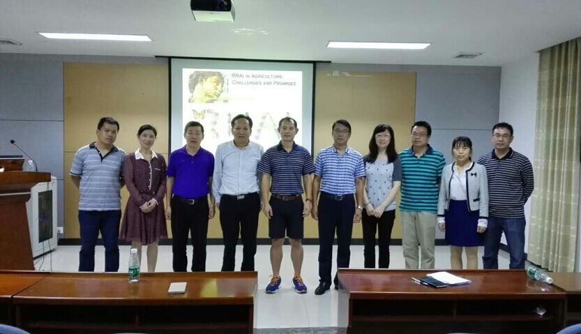 2015年10月16日上午,美国肯塔基大学(University of Kentucky)周序国教授应邀来公司进行学术交流,为学院师生作了题为“ RNA interference in agriculture: challenges and promises”的学术报告。周博士在报告中生动地讲解了 RNA干扰技术在农业病害防治、生物医学领域等方面的发展现状及应用,非常热情地回答了各位老师和同学的提问,并给大家介绍了肯塔基大学的研究方向和背景。会后,周博士参观了公司植物功能基因组学与发育调控湖南省重点实验室,与有关教师就科研合作、员工培养开展了交流。此外,湖南省农科院植物保护研究所所长刘勇研究员、书记张德咏研究员也应邀一同前来听取报告和参加了师生的座谈。