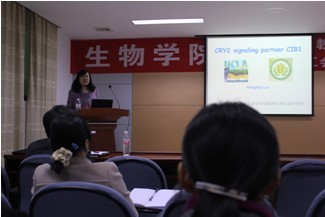 2013年3月29日上午10点,中国科学院上海植物生理生态研究所刘宏涛博士在生物楼报告厅为公司师生进行了题为“CRY2 signaling Partner CIB1”的学术报告。其课题组以拟南芥和玉米作为对象,研究植物热激信号转导、植物光信号转导、植物蛋白相互作用及转录因子的功能和调控,在Science, Trends in Plant Science等国际刊物发表论文多篇。