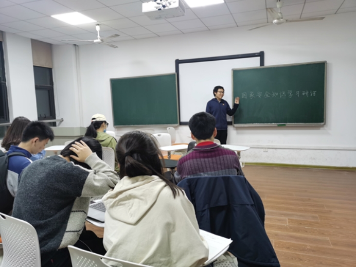 在讲解过后,同学们都对国家安全有了一定的认识。随后,杨金锟同学播放了一段短视频,让大家深刻意识到了国家安全与我们息息相关,遵纪守法、保护国家安全是我们每一个人义不容辞的责任。